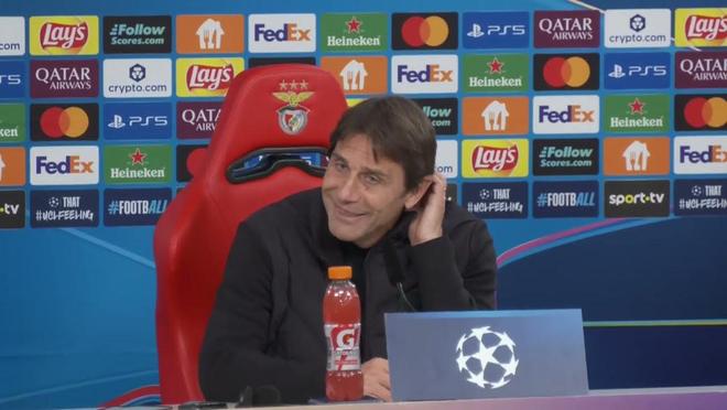 率隊(duì)在歐冠聯(lián)賽階段第6輪客場(chǎng)0-2負(fù)于本菲卡之后,那不勒斯主教練孔蒂出席了新聞發(fā)布會(huì)。